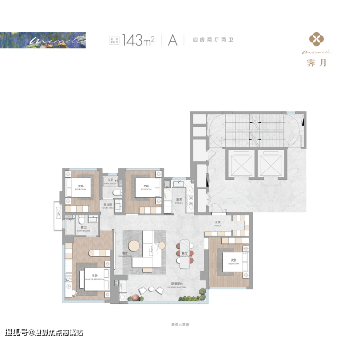 如何将滨水资源发挥到最佳?星熠丨建筑面积约143㎡户型将客厅与阳台一并打造成观景舱,三面采光无遮挡,增强空间明亮度与舒适度,延展景观视野。同步,LDKB一体化设计,空间利用率更高,日常的家庭聚餐、孩子的嬉闹时光……皆在彼此视野之内,创造出高频互动的家庭中心。