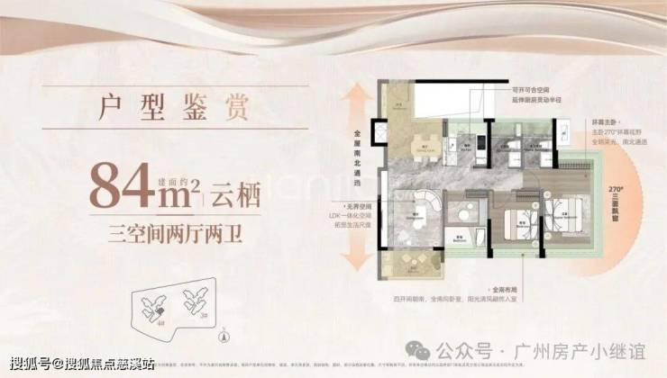 以84㎡三房为例,做到双卫+南向主卧+U型厨房,紧凑而不局促