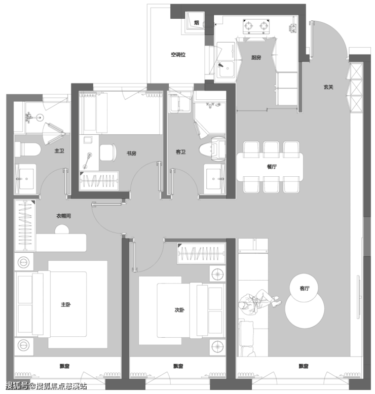2、小家化主卧套房;采光衣帽间、情景飘窗、独立卫浴三位一体,私享时光的尊崇感