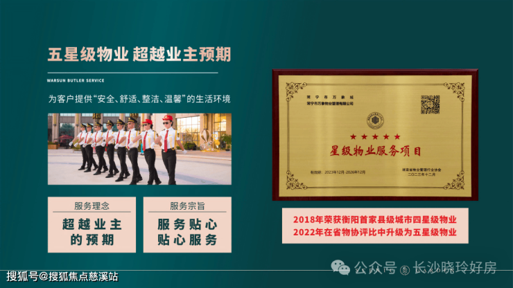 万象·恒基物业秉承“服务贴心、贴心服务”的服务宗旨和“超越业主预期”的核心服务理念,为客户提供“安全、舒适、整洁、温馨”的生活环境。多年来业主满意度调查评分均在90分以上,细致服务,有口皆碑。2022年在省物协的评比中升级为五星级物业!