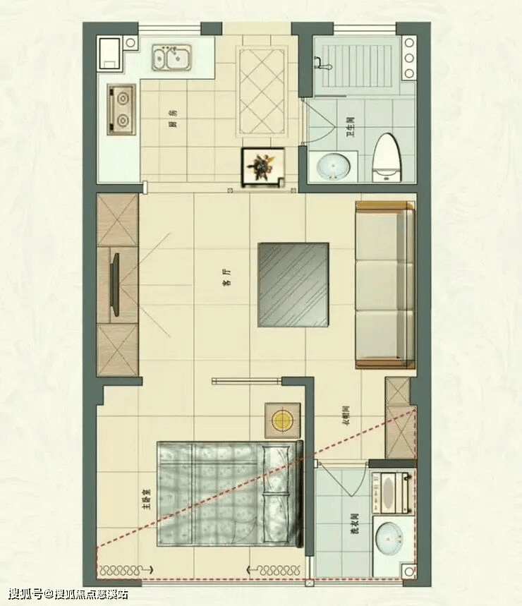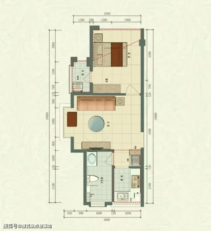 B户型 建筑面积44.88㎡一室一厅一厨一卫
