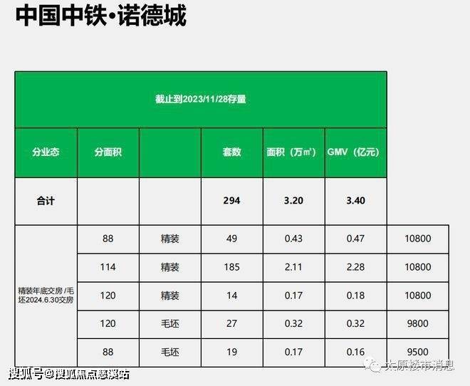 中铁诺德城项目,容积率3.7,绿化率30%,产权七十年,主要户型有88平两居,114平和120平三居。精装修成交在10800左右,2023年12月底交付。毛坯成交在9800左右,2024年6月底交付。精装修交付的楼栋,已经在交付倒计时,开启了亮灯仪式。