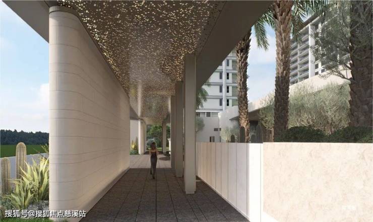 •一进:酒店式归家 | 近 70 米长弧形落客门廊,围合仪式感入口前院