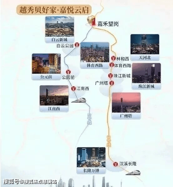 嘉禾望岗作为广州北部的交通枢纽,通过2号线,3 站直达白云新城(萧岗站),9 站畅达老城中心越秀公园、纪念堂,无缝连接北京路等繁华商圈;