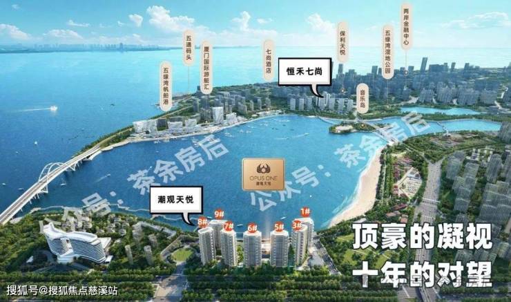 厦门五缘湾地标级豪宅,案名于今日曝光:潮观天悦,项目总共7栋楼,274套,面积跨度188-430㎡。五缘湾头排一线湾景、南向看湾,第四代住宅、高标准精装修,天悦系列收藏作品。五缘湾上一个在沿湾第一排的住宅项目还得追溯到2014年开盘的被誉为亚洲十大豪宅之一的“恒禾七尚”,迄今已经10年之久。