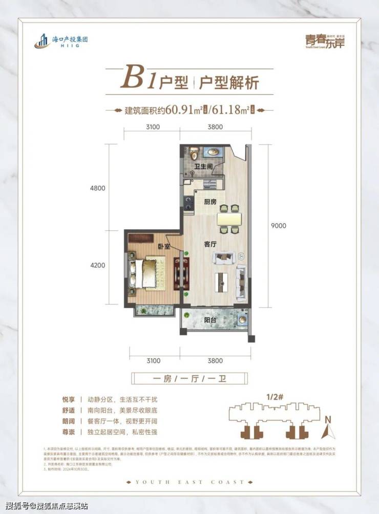 ·建面约60-61m²一房一厅一卫