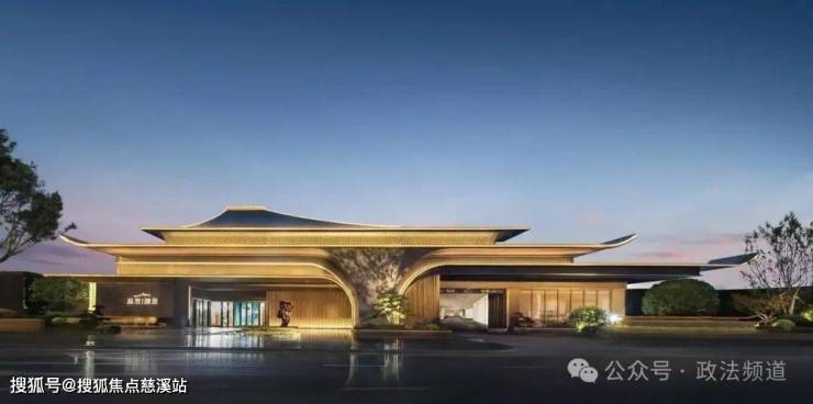 东方美学公建化立面,云卷飞檐造型、香槟高级配色金属材质,南面大窗墙比,客厅采用全景落地窗;大门秉承酒店式风格,建筑观感即是居者的身份标签感。