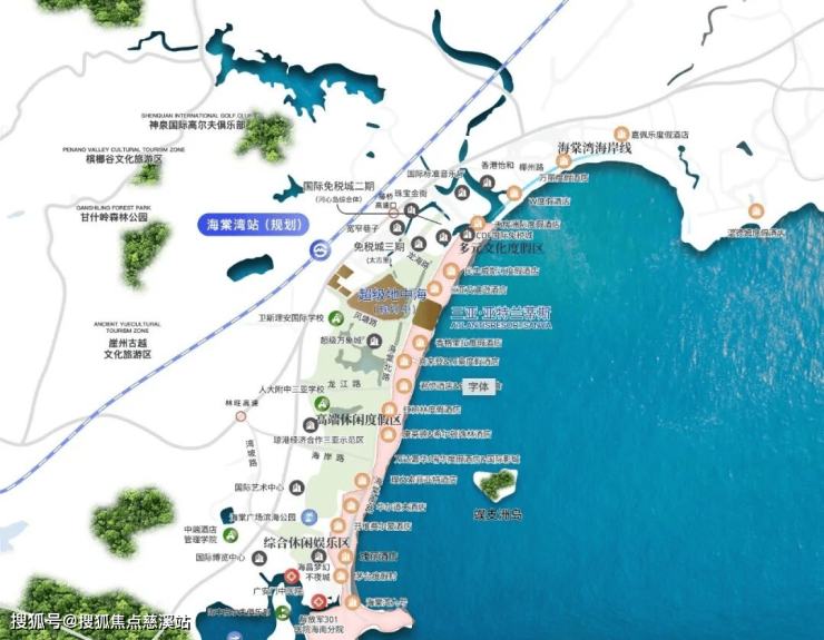 ◎通达交通属性——距离海岸线约 2 公里,距离海南环岛高速路约 4 公里,通往高铁站及机场都十分便利,未来还规划了海棠湾高铁站,建成后出行更加便利。