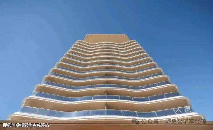 建筑外立面以 “简约大气” 为基调,横向铝板线条与飞片型材造型交织,端头弧形元素搭配变异阳台设计,再加上点睛的 “游艇造型塔冠”,让建筑充满灵动韵律。