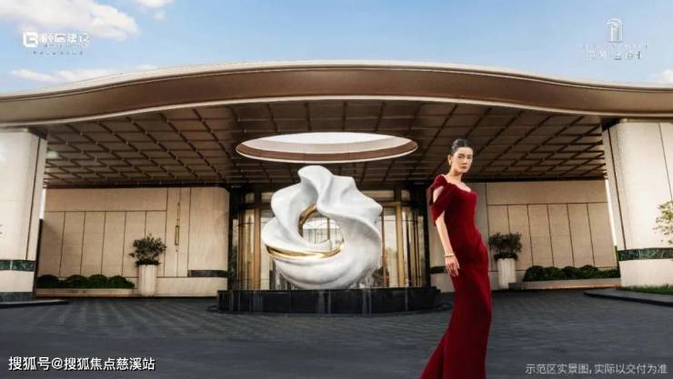 项目示范区是现代海派风格,主出入口大门采用古铜色铝板,打造了约260㎡酒店式落客环岛,整体艺术感和美感扑面而来。