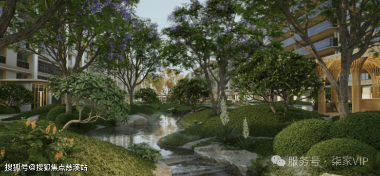 景观以“八景造园”为核心理念,将热带原生植被与东方造园手法相融。社区内规划溪谷花境、阳光草坪、叠石水景等八大景观节点,搭配凤凰木、三角梅等本土花木,四季有景、步步生趣。更设计亲水平台、林下休憩区等互动空间,让老人可漫步赏景,孩子能嬉戏玩耍,实现自然与生活的无缝衔接。