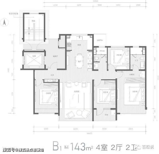这四个户型两个三房两卫,两个四房两卫,全部都是大开间、小进深,南北通透,房间全明,南向三间或者四间,背后无连廊,公摊很小,房间尺度足够大。总之,在户型上,基本上做到了无可挑剔。