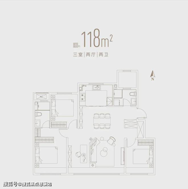 87㎡三室两卫:开阔全明三居,南北通透,空间独立紧凑几乎0浪费。