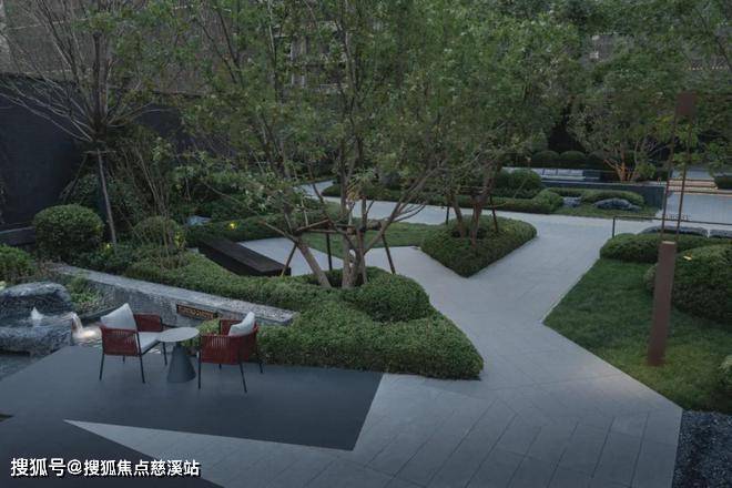 第一条线索是轻松惬意的酒店度假感。前广场与门头尺度高达60米,尊享酒店式入口,大气沉稳,层叠涌泉奏响迎宾的乐章,步入艺术中庭,水景飞流直下,汇入无界水庭,四时皆景伴水归家,行至后庭,层叠水景托举高透白色水晶桥,流光溢彩演绎湖光水色的宁静与浪漫,使景观观赏与休闲并进,美好的社区画卷层层展开。