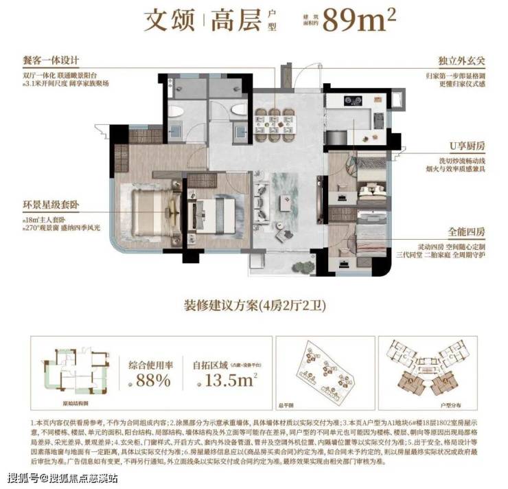 2. 户型得房率确实高,89㎡起,做四房是真能用