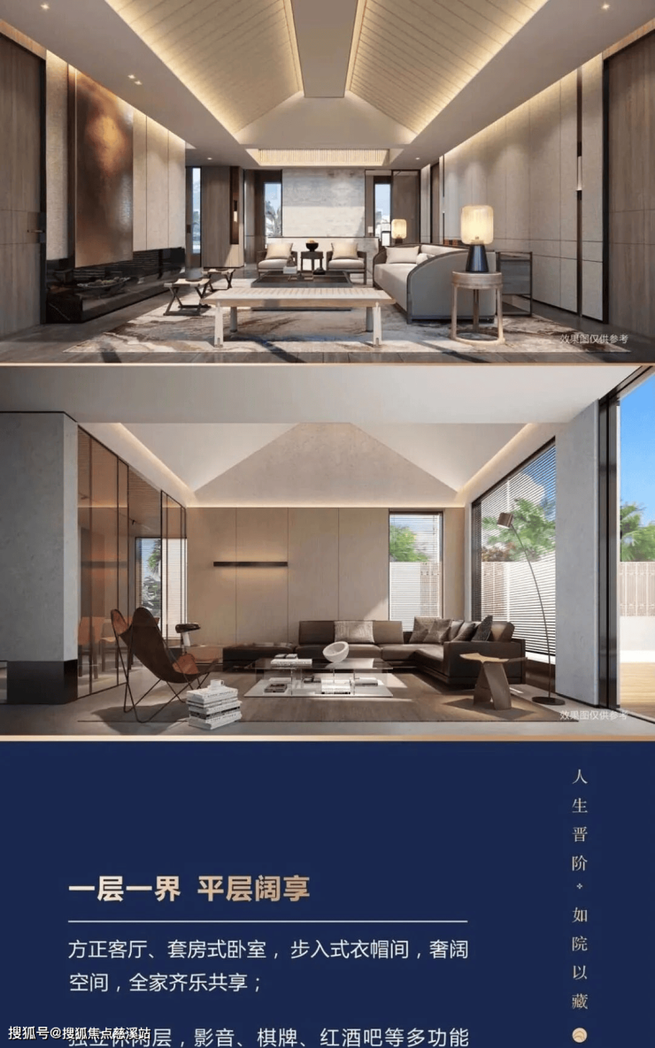 建筑面积175–275㎡,超大庭院(占地面积322–1366㎡),户户泳池,私家车位;敞阔两层户型设计,私享独院产品。