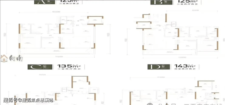 ③建筑面积约143㎡的4房2厅2卫 价格区间285—383万