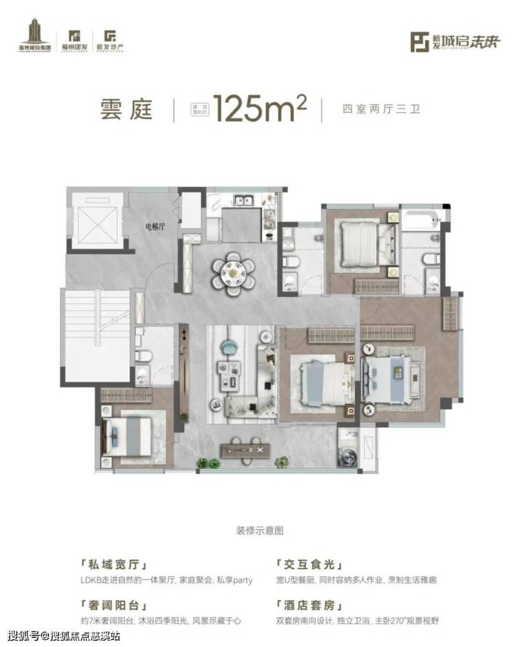 酒店式入户大门(50米弧形挑檐)、泗水归堂落客设计、约130米“城市会客厅”等,强调归家仪式感。