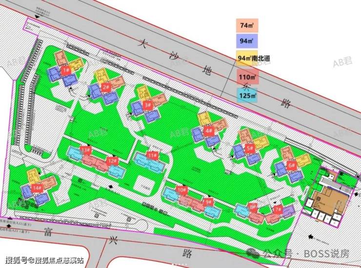 产品类型:建面约 74-94㎡高层三至四房、建面约 110-125㎡板式小洋房