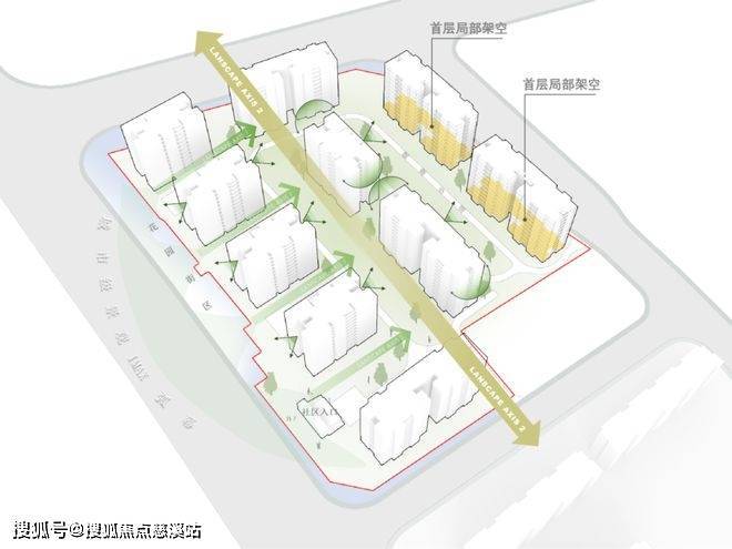 项目东侧大尺度退界,对城市开敞,建筑窄面对城市道路,让更多小区景观与城市交融。项目内部最大限度地利用土地资源,为居民提供了充足的公共空间。
