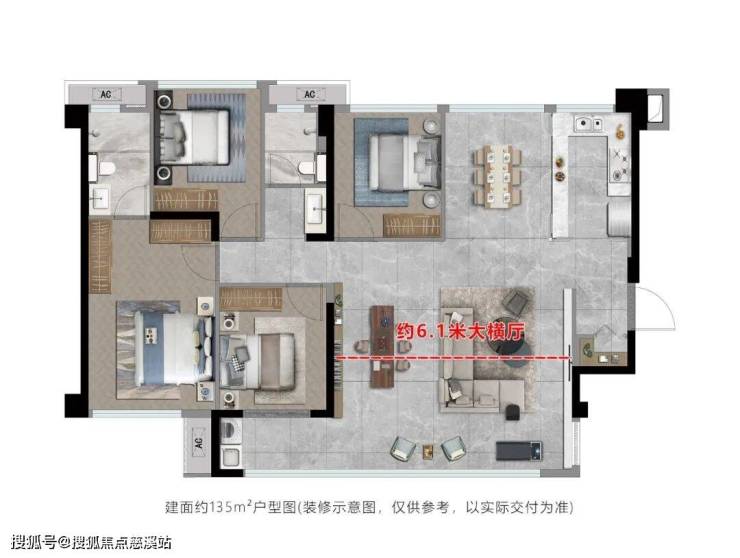 当然,它还有大尺度空间!约6.1米大横厅,拥有阔绰动区空间,家庭聚会或者大型会客,皆可轻松应对,哪怕你想开part,这样的空间也足够你造!