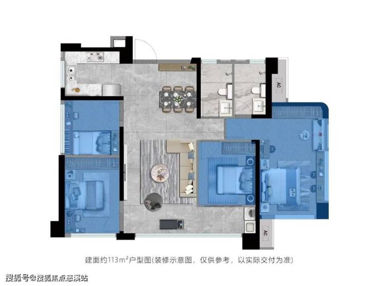 【建面约113㎡ 4房2厅2卫】拥有约92.5%的高得房率,居然能够做成四房,想有一间书房或者茶室,那还不简单!不过,该户型仅剩最后20席!