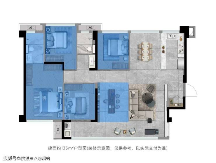 【建面约135㎡ 5房2厅2卫】拥有约90%的高得房率,对比市面同等面积产品,它能提供给业主更多的使用空间。而同等价格之下,它的居住空间更大,性价比更高!