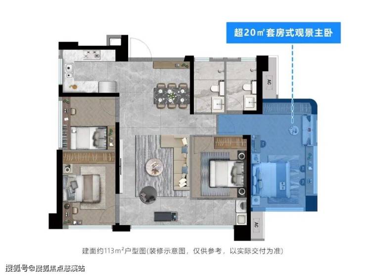 两大明星观景户型,建面约113㎡与135㎡皆拥有高得房率,“多一房”的空间,给予业主更多想象空间!
