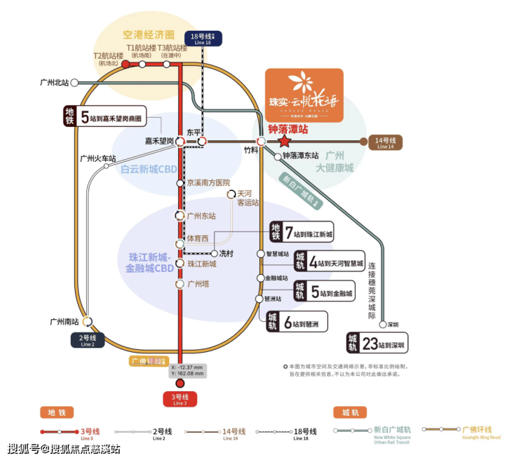 2城轨:广佛环线(预计2023年通车)4站直达天河智慧城,5站到金融城,6站到琶洲(预计2023年通车),新白广城轨(预计2023年通车)1站直达白云机场。