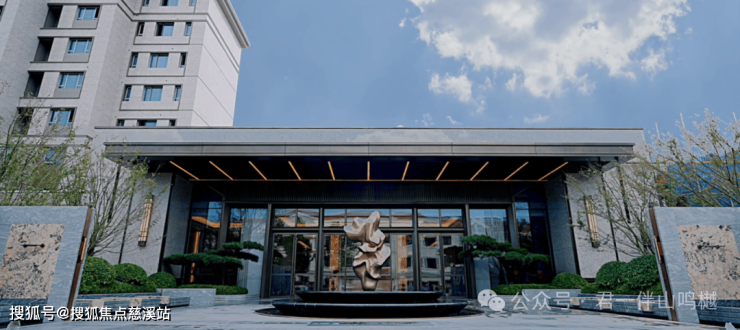 云岫门庭两侧30年树龄乌桕列阵和入口迎客松,寓意“长久、吉祥”,重塑归家第一重礼序;约3.8米高鸣樾廊桥,是崂山前海独树一帜廊桥景观;约5米林岚水瀑,取自郭熙《林泉高致》的高山流水,气势恢宏,气贯长虹。