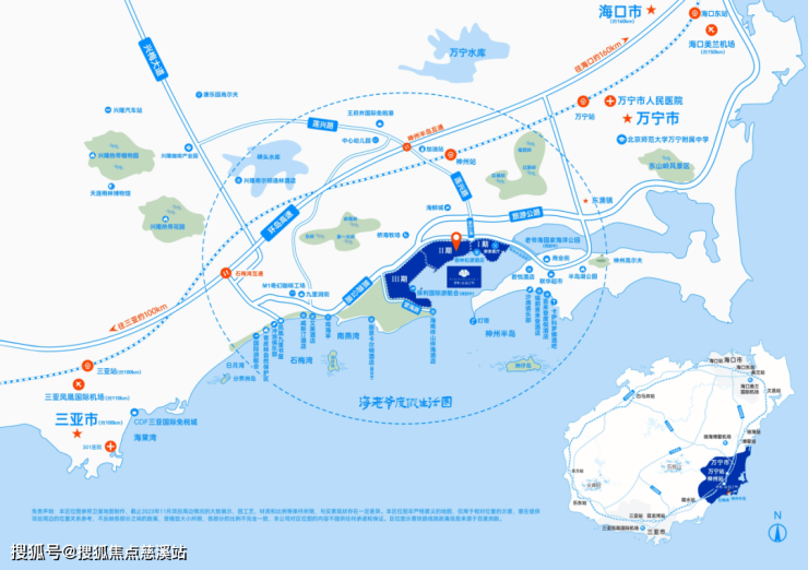 项目与高铁神州站直线距离仅约6公里,2站即达三亚、5站即达海口,约6公里即达海南环岛高速神州半岛匝道出入口,约10公里即达兴梅大道,轻松环游全岛。往北约53公里即达琼海博鳌机场,乘高铁5站即达三亚凤凰机场(约110km)、4站即达海口美兰机场(约150km),全国主要城市航班直飞。