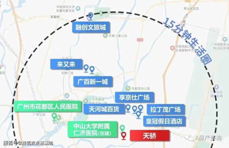 项目2公里范围内有天河城百货(在建)、拉丁茂、京仕广场三大商业广场,约5公里可达来又来、广百新一城、融创文旅城等大型商业综合体。