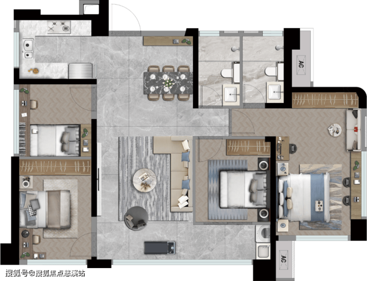 Y字形核心筒结构:户户观景采光通风皆佳,入户独立玄关,实现高度收纳,确保归家的私密。