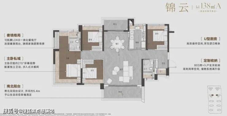 首先,户型使用率超100%,在当前楼市新规下,这样的空间利用率实属罕见,让业主花更少的钱,享受更大的居住空间。其次,所有户型均采用可拓展LDKB一体化设计,打破传统空间界限,厨房、餐厅、客厅与阳台无缝衔接。再者,主卧清一色配备270°落地窗,且实现三面单边采光,居住舒适度直接拉满。