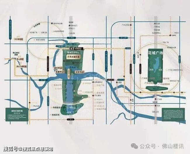 占位灯湖中轴核心段的保利灯湖天珺,直线距离“南海之眼”中央客厅仅约800米,佛山6号线(规划中)与广州28号线支线(建设中)将在片区交汇,1.5公里长的灯湖中轴生态公园已启动招标,超200万㎡商业集群涵盖南海艺术中心、灯湖PARK等综合体。
