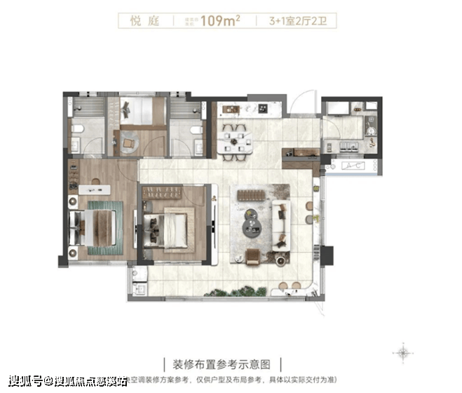 例如建筑面积约109㎡,即便是全盘最小户型也不将就。除了“N+1”格局,客厅面宽做到约4.75m直连阳台,相比市面上同面积面宽更大,空间尺度感更强,在同类产品中具备更强的竞争性。