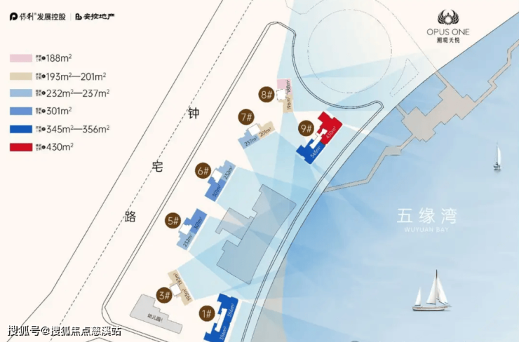 项目共规划7栋楼,仅274套房源,户型面积为188-430㎡。前排主打345-430㎡超大平层,后排为188-301㎡大户型。