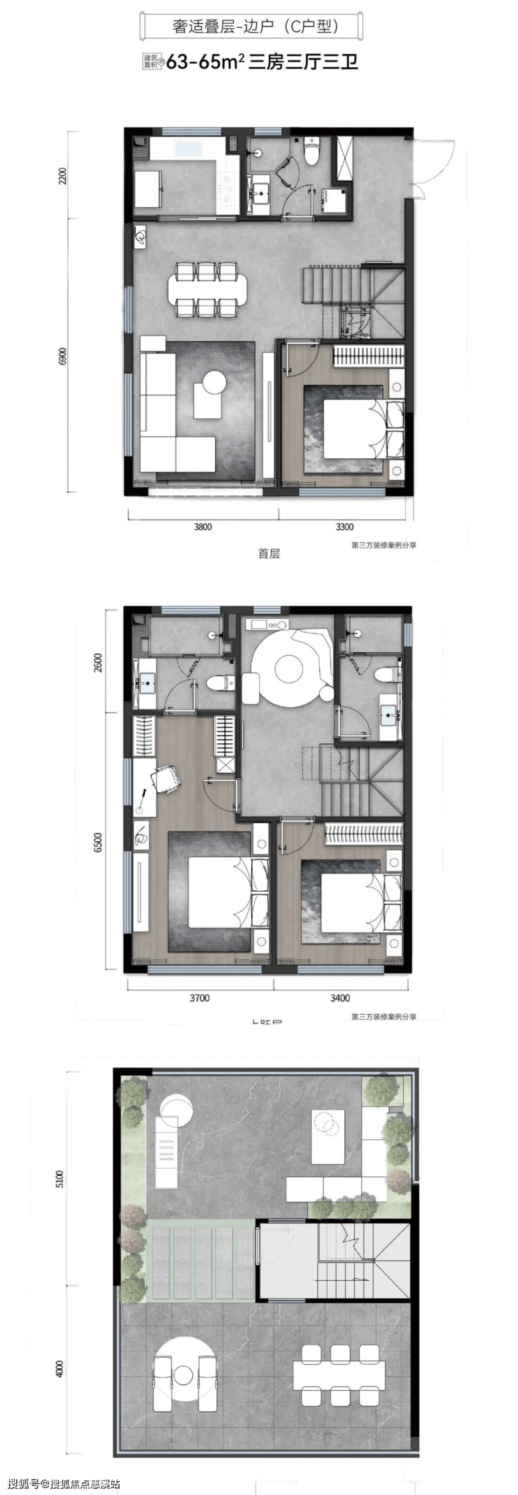 ③下叠:赠送约30-100平米的花园