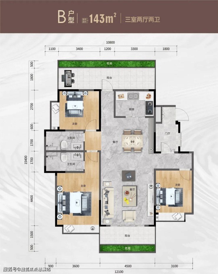 [明亮]南北双阳台,生活景观合理分区
