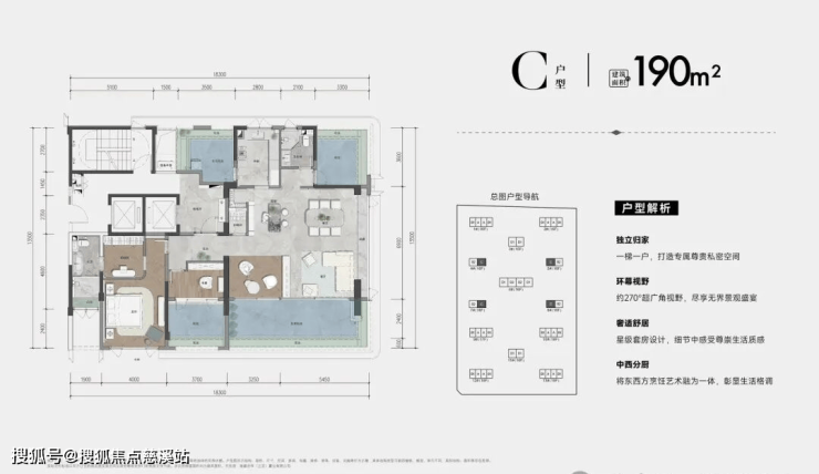 建面约130-229㎡湾芯环幕平层,纯板楼格局。约87米超宽楼距,约3.3米层高,270°巨幕视野,空间百变,定义通透与奢阔。