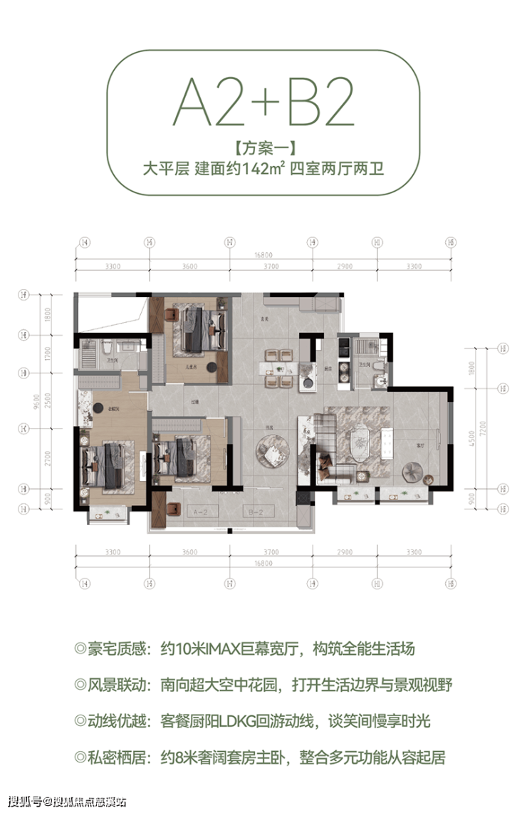 具体来说,A-2户型(建面约60㎡)以独立入户花园和客餐厨一体化设计,打造宜居范本;B-2户型(建面约84㎡)则通过通透宽厅和观景阳台,让阳光清风入室做伴;B3奢阔大平层(建面约89㎡)以高得房率和阔绰宽境,提升居住品质;A-2+B-2大平层(建面约142㎡)则通过豪宅质感和私密有序的设计,满足家庭成员的多元需求;而B-3+B-3空中微墅(建面约178㎡)更是以人性规划和品质宜居的设计理念,打造出一处尊贵的居住空间。