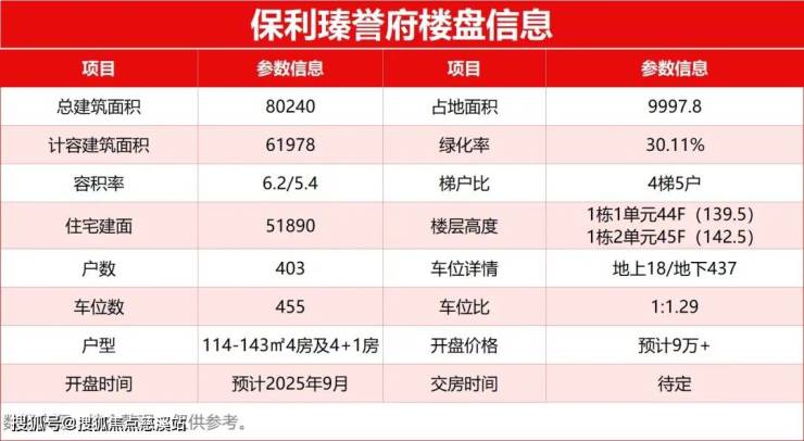 项目概况:保利瑧誉总建面:约8万m2,可售建面约5.4万m,容积率:5.4