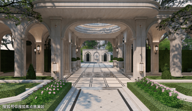 园林设计灵感来源于卢浮宫,以“横三竖五”的经典构图,将法式宫廷的规则轴线与自然园林的浪漫气息完美融合。