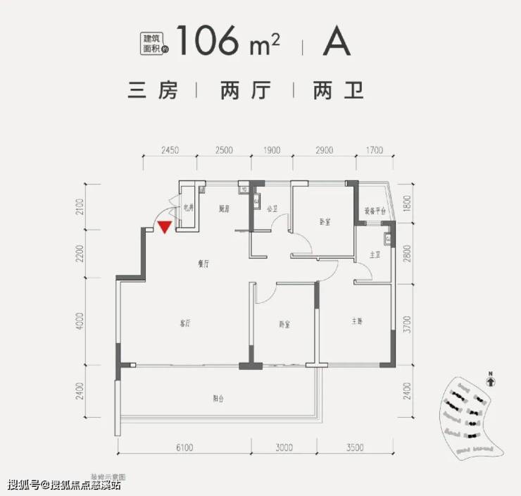 1、106平米三房两卫 A户型