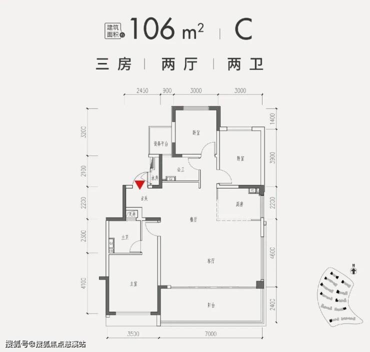 3、106平米三房两卫,C户型