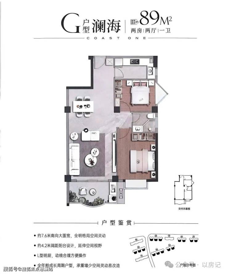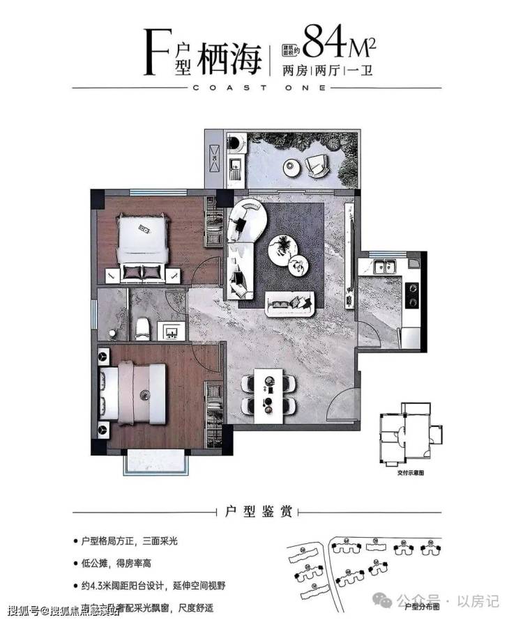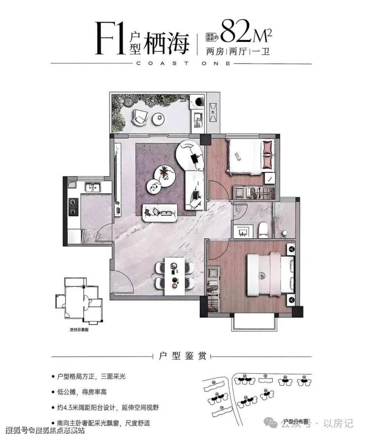 •82-88㎡两房紧凑实用,部分南北通透;