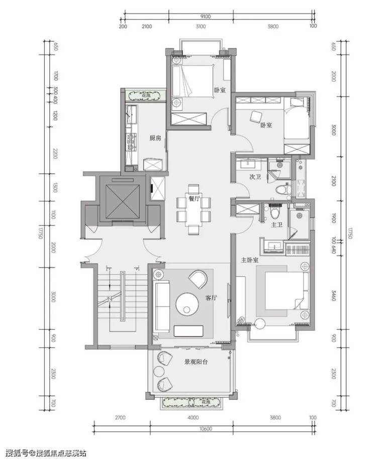 1、A户型:建筑面积约110平方米三房两厅两卫