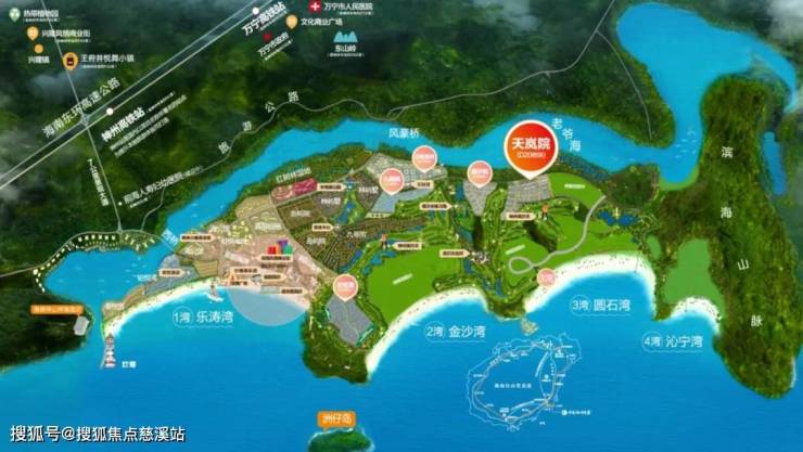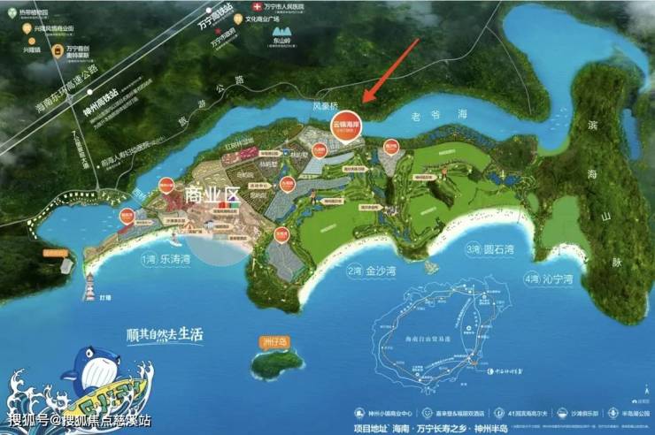 中海神州半岛,占地约18平方公里,平均容积率仅0.34,占据北纬18°万宁长寿之乡核芯度假区域。三面环海,一面接陆,南濒浩瀚南海,西靠老爷海港口,北临东澳港,是海南最大的独立原生半岛。区域含纳富氧红树林、洲仔岛等多重稀世资源、五大缤纷配套及多元业态产品,将给业主和游客带来一站式的缤纷度假生活体验。
