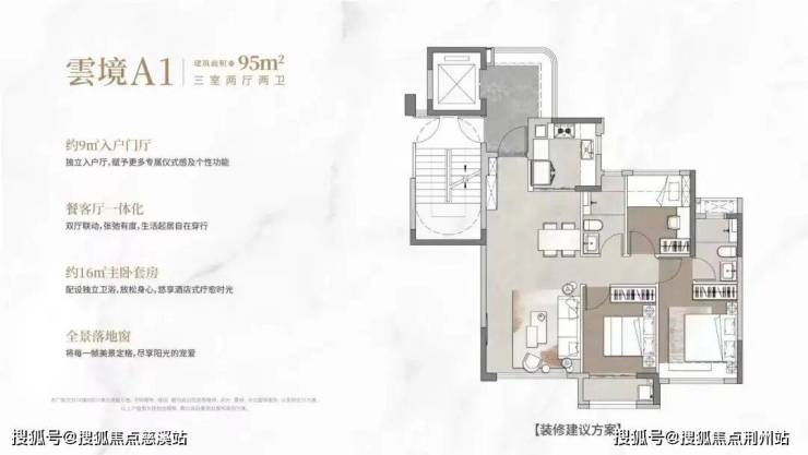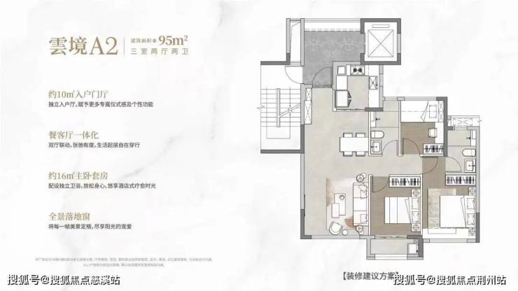 95㎡三房两卫:独立电梯厅,270度采光前厅