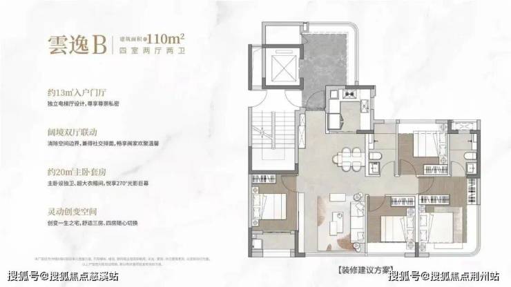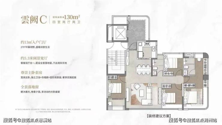 110-130㎡四房两卫:20㎡主卧+全景舱,5.3米宽厅